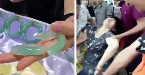 Как например, в этом случае – туристка в Китае случайно разбила нефритовый браслет и потеряла сознание, когда ей показали цену, которую ей придется за него заплатить. Женщина посещала рынок нефрита в городе Руили, провинции Юннань.