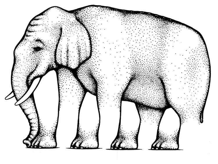 3. А этот «многоногий» слон (сколько у него ног: 8, 6, 5 или все-таки 4?) – результат того, что мозг склонен выискивать узоры в абстракциях и заполнять видимые пробелы.