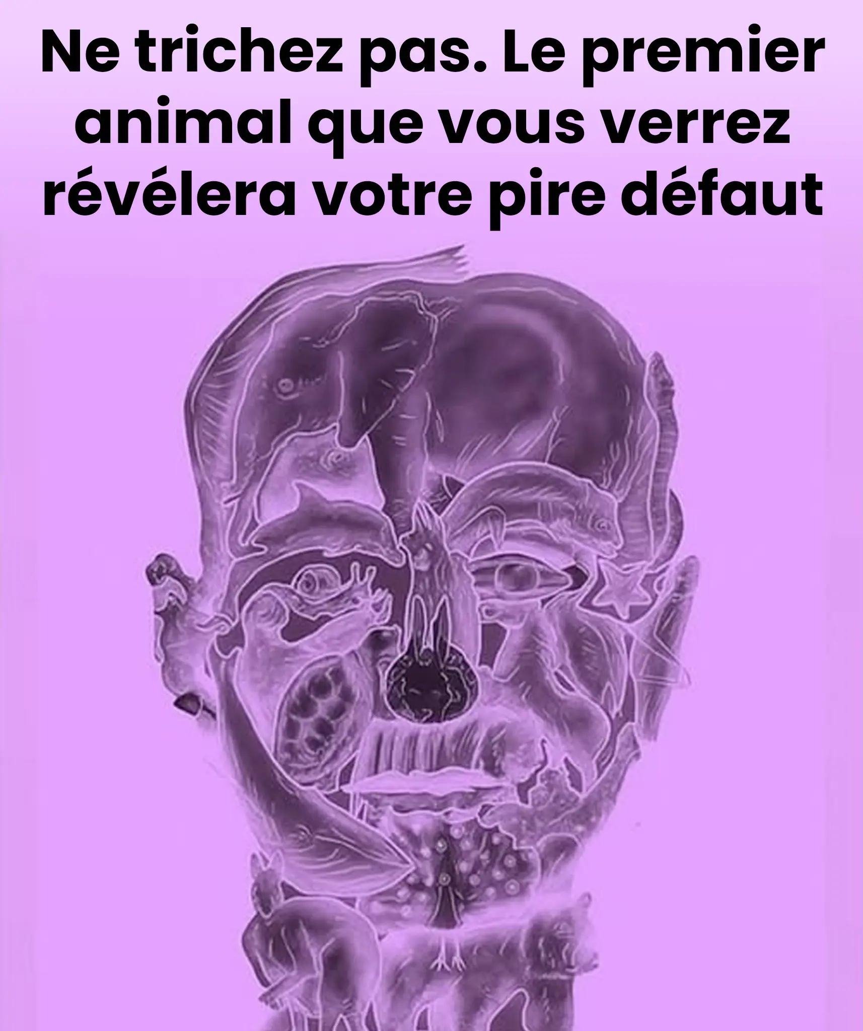 Ces illustrations sont conçues comme de véritables casse-têtes visuels. À première vue, on distingue souvent un visage humain, puis, en y regardant de plus près, plusieurs animaux apparaissent, subtilement imbriqués les uns dans les autres. L’idée est simple : notre cerveau repère instinctivement une forme avant les autres, et cette première perception serait censée refléter un trait dominant de notre personnalité.