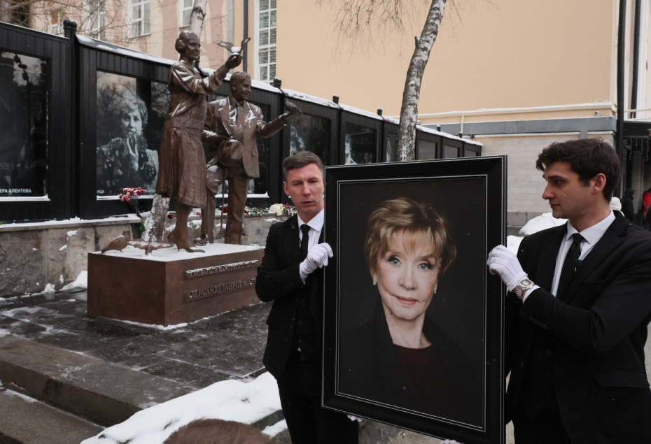 Владимиром Меньшовым, ушедшим из жизни четыре с половиной года назад после осложнений коронавирусной инфекции. Осенью 2022 года на его могиле был установлен памятник из темного мрамора с изображением взлетающих белых голубей — символической отсылкой к культовой картине «Любовь и голуби». По соседству с супругами покоятся и другие выдающиеся деятели культуры — Александр Ширвиндт, Василий Лановой и коллеги по цеху. Гражданская панихида по Вере Алентовой прошла в Театре имени Пушкина. Проводить актрису в последний путь пришли художественный руководитель МХТ имени А. П. Чехова