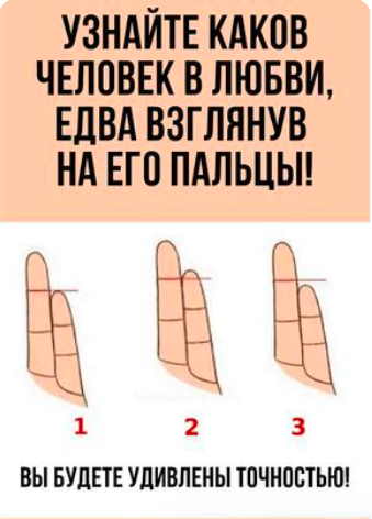 Узнайте каков человек в любви, едва взглянув на его пальцы! Вы будете удивлены точностью! С помощью этого простого теста вы сможете узнать, каков человек в любви. Узнайте каков человек в любви, едва взглянув на его пальцы!