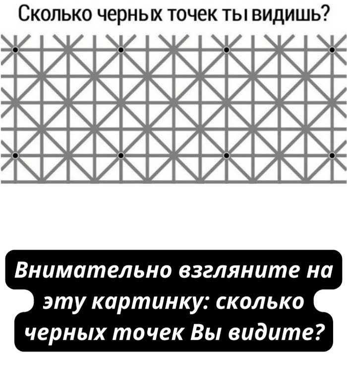 Интересно, что правильный ответ известен: на картинке 12 чёрных точек. Однако большинство людей не могут увидеть их одновременно.