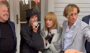 Репортеры издания Rus TVNET поделились кадрами супружеской пары. Он — в светлом костюме. Она — в мини-шортах.