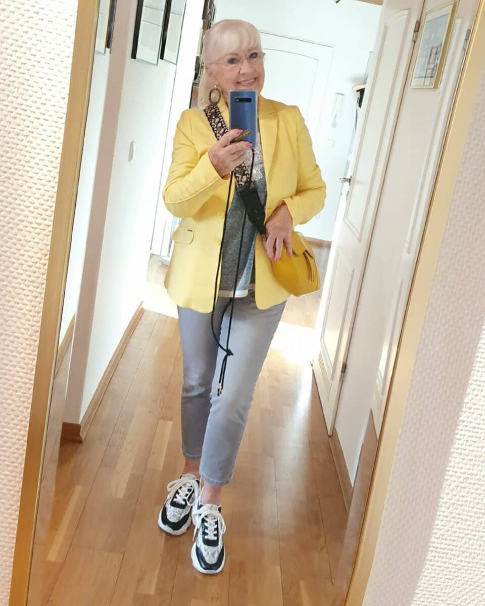 Выбирайте то, что вам по душе, игнорируя возрастные стереотипы. Кроссовки или кеды будут отлично смотреться с разнообразными нарядами.