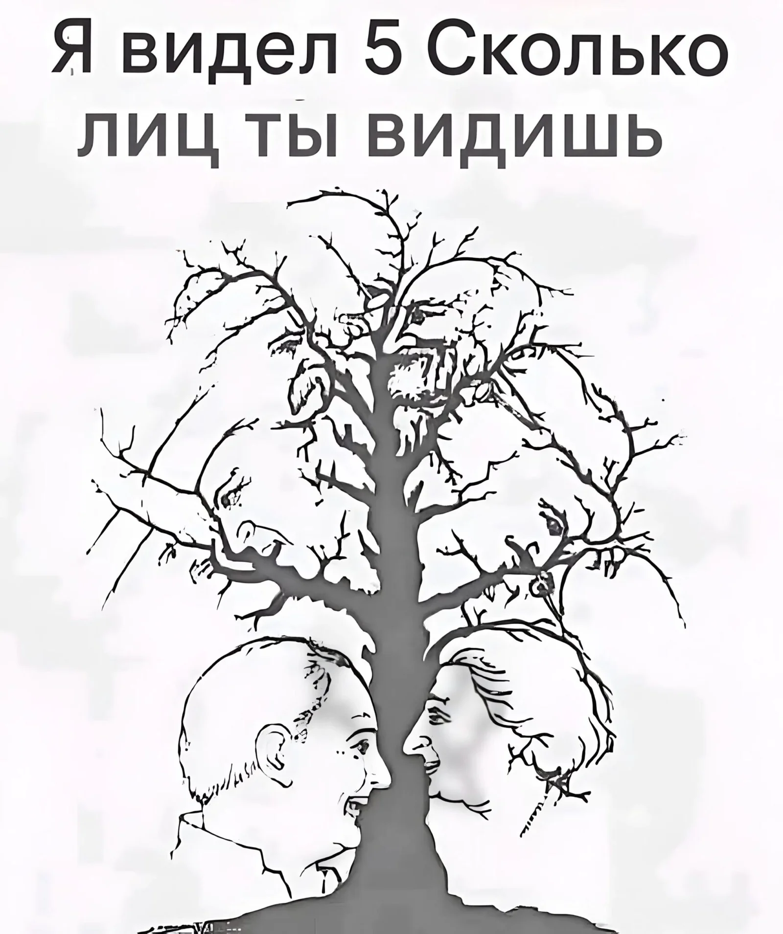 Сначала вы видите обычное дерево, но если присмотреться, то можно заметить десяток лиц, среди которых — портреты известных личностей. Некоторые пользователи утверждают, что видят здесь лица, например, Маргарет Тэтчер и Михаила Горбачева, в то время как другие уверены, что это изображения индийских политиков.