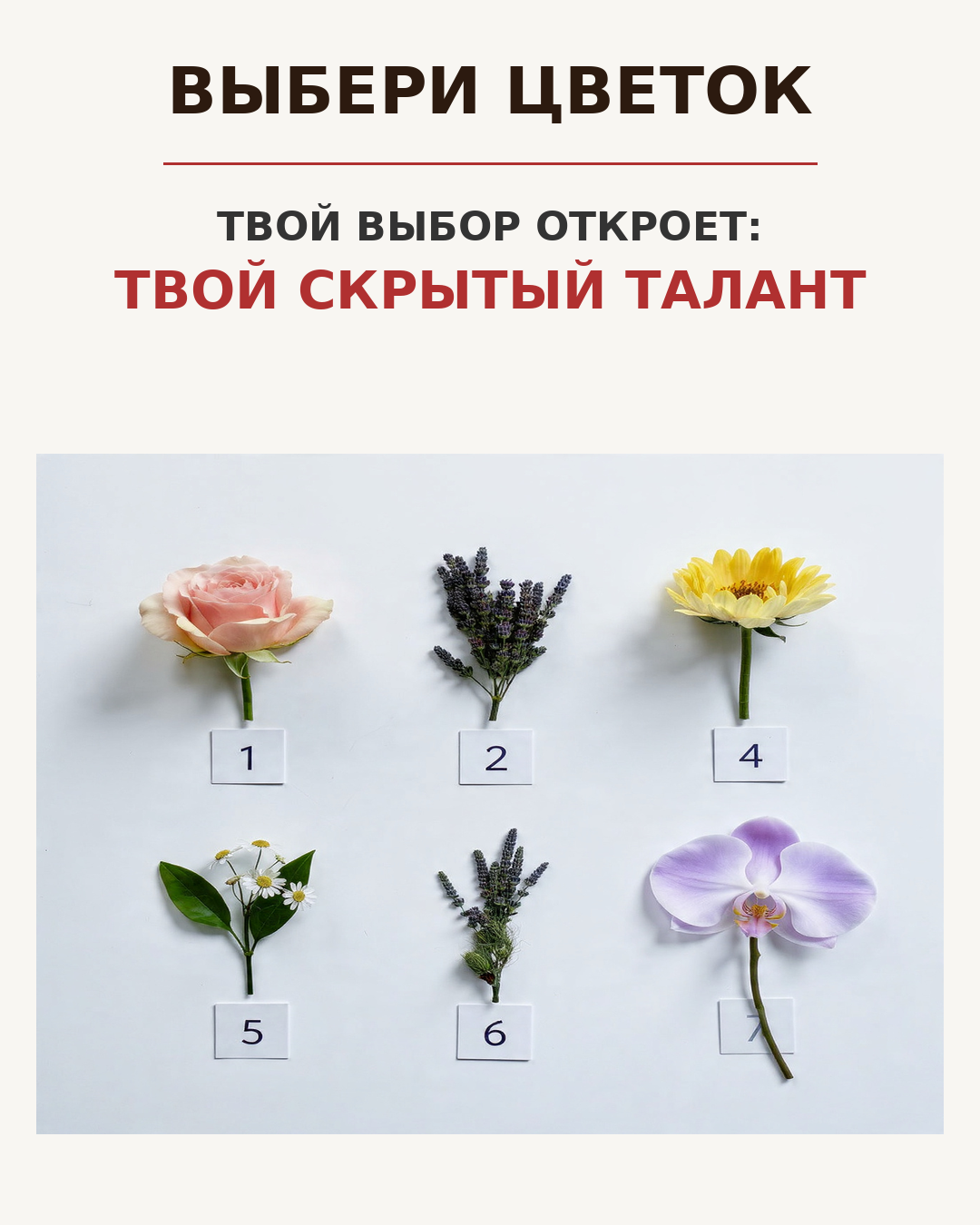 6 — Орхидея. Твой талант — мудрость и стратегия. Ты видишь на три шага вперёд, даже если молчишь об этом.