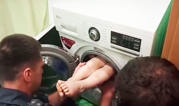 Мальчик залез в стиральную машинку машинку, да так, что пришлось вызывать спасателей, чтоб его оттуда вытаскивать. Ребенок то ли прилип там, то ли согнулся так, что разогнуться не смог, но в итоге просидел там больше часа.