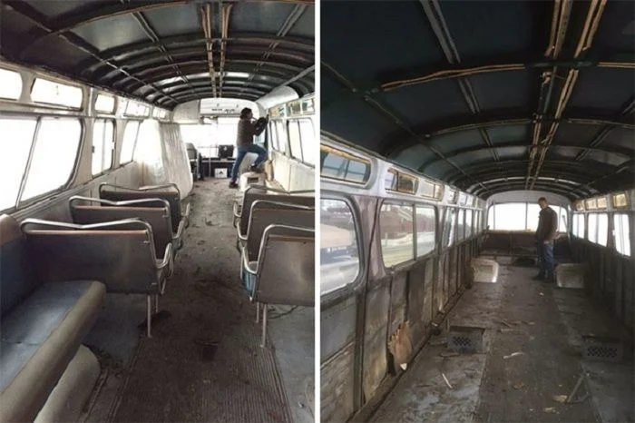 Полуразрушенный автобус за три года превратили в модный и комфортабельный жилой дом на колесах (Грейхаунд).